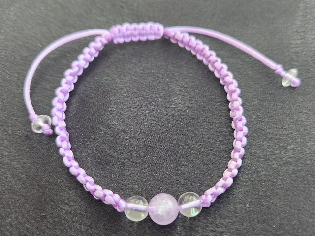 ◯使用している石 ・ラベンダーアメジスト8mm1粒 ・水晶6mm2粒 ・水晶ボタンカット2粒 ◯長さ約17~26m ※サイズ調整約9cm ※蝋引き糸(ロウビキ)を仕様し手編みで制作しました。 ◆《ライラックカラーの効果》 ー信頼を深めるー ライラックは信頼を深め、直感力を目覚めさせ、霊能力を高める色とされています。 柔らかく穏やかなライラック色は、意識の拡大をもたらし、神聖さとの結びつきを強めてくれます。 ライラックを取り入れて、古いパターンからの自分を解放し、内なる力を呼び戻しましょう。 崇高なライラック色の光で信頼を深めてみましょう。 ◆『愛の守護石』『真実の愛を守りぬく石』と呼ばれる2月の誕生石でもあるアメジスト。 こちらは紫というよりは淡い藤色といった色合いです。 《アメジストの効果》 ○調和 ○癒しと安らぎ ○内観の促進 ○精神の安定 ○問題解決を助ける ○知性と洞察力を高める ○家庭円満 アメジストは、ストレスで疲れた心を癒し、落ち着かせ、穏やかな安らぎを与えてくれるといわれる、スピリチュアルパワーの強い石のひとつでもあります。 ヒーリング効果が非常に強く、ネガティブになりがちな方にはポジティブな癒しを。ハートが傷ついてしまった人には、やすらぎのエネルギーを与えてくれるでしょう。 マイナスエネルギーを浄化し、希望の光で心を満たしてくれるのです。 この石を枕元に置いておくと心地よい安眠をもたらしてくれるとされるため、不眠に悩まされている人にお勧めです。 ◆《水晶(クォーツ)の効果》 ○生命力の活性化 ○細胞の再生力・免疫力を高める ○体内に蓄積された毒素の排除 ○開運 ○浄化 水晶は日本の「国石」であり、4月の誕生石でもあります。 水晶のパワーは、『調和・統合・強化』。 そして非常に優れた浄化作用をもたらす石として知られています。 石はもちろん、すべてのものに対しての調和を生み出し、それらをうまく統合させ、よりいっそう強力なパワーを発揮させるように導いてくれます。 そして、優れた浄化作用により、他のパワーストーンが吸収したマイナスエネルギーや様々な波動を、もとのクリーンな状態に戻してくれます。 パワーストーンを持つならば、水晶はまず最初に揃えたい基本の石であり、様々な用途に使用できる万能のパワーを持ちます。 石の収集は「水晶に始まり、水晶に終わる」といわれます。 【ご注意】 ①撮影時の明るさ、角度、カメラの性能及びモニターによって、実際の商品と色合い、質感などが若干異なる場合があります。 予めご了承ください。 ②天然の物ですので、若干の不純物、天然キズ、クラック(内部の割れ).色むらとインクルージョン等がある場合がありますのでご了承ください。 ※記載されている効果などは、文献やネットで伝えられているものを参考にしています。効果・効能を保証するものではありませんので、ご了承ください。