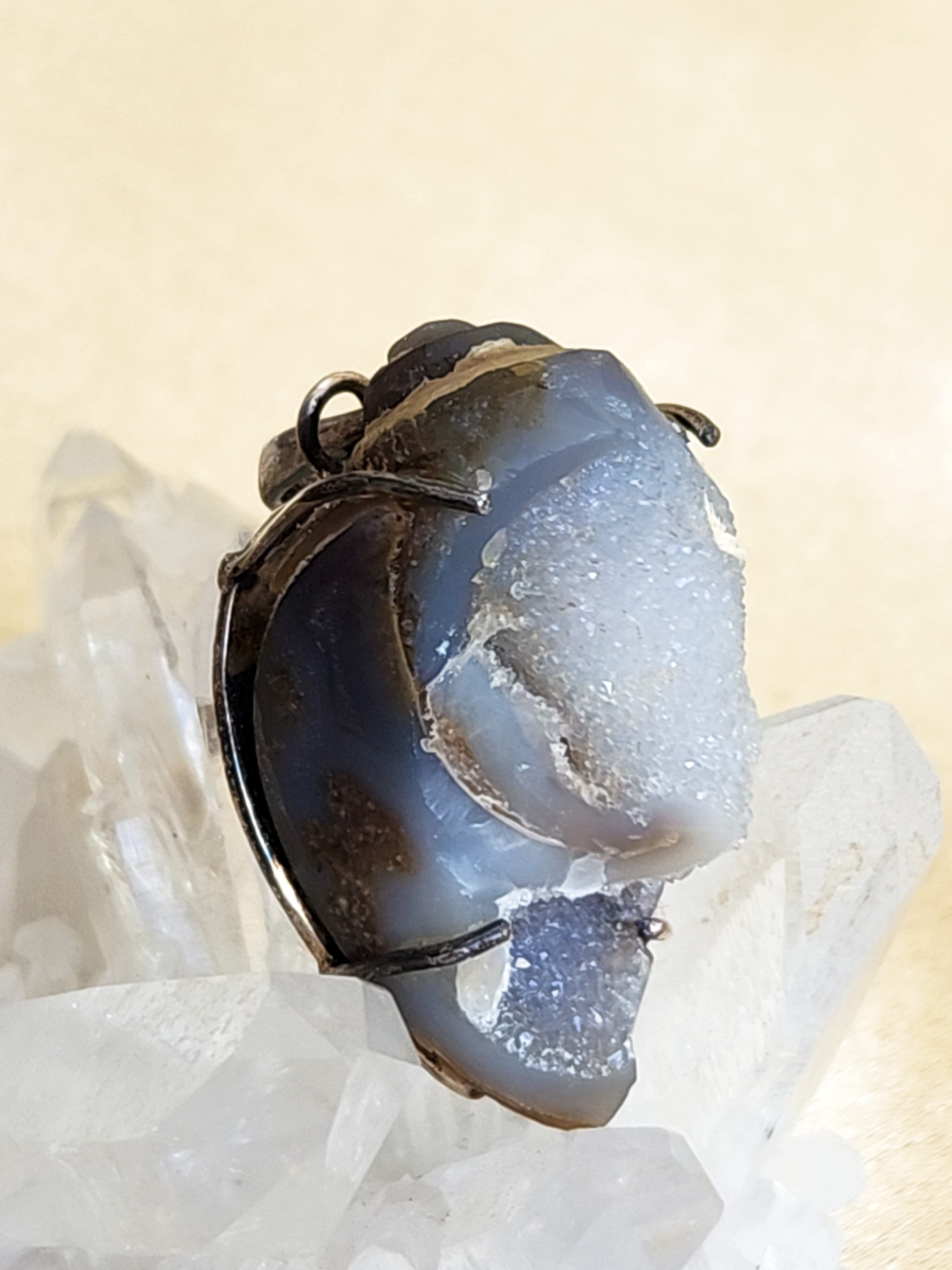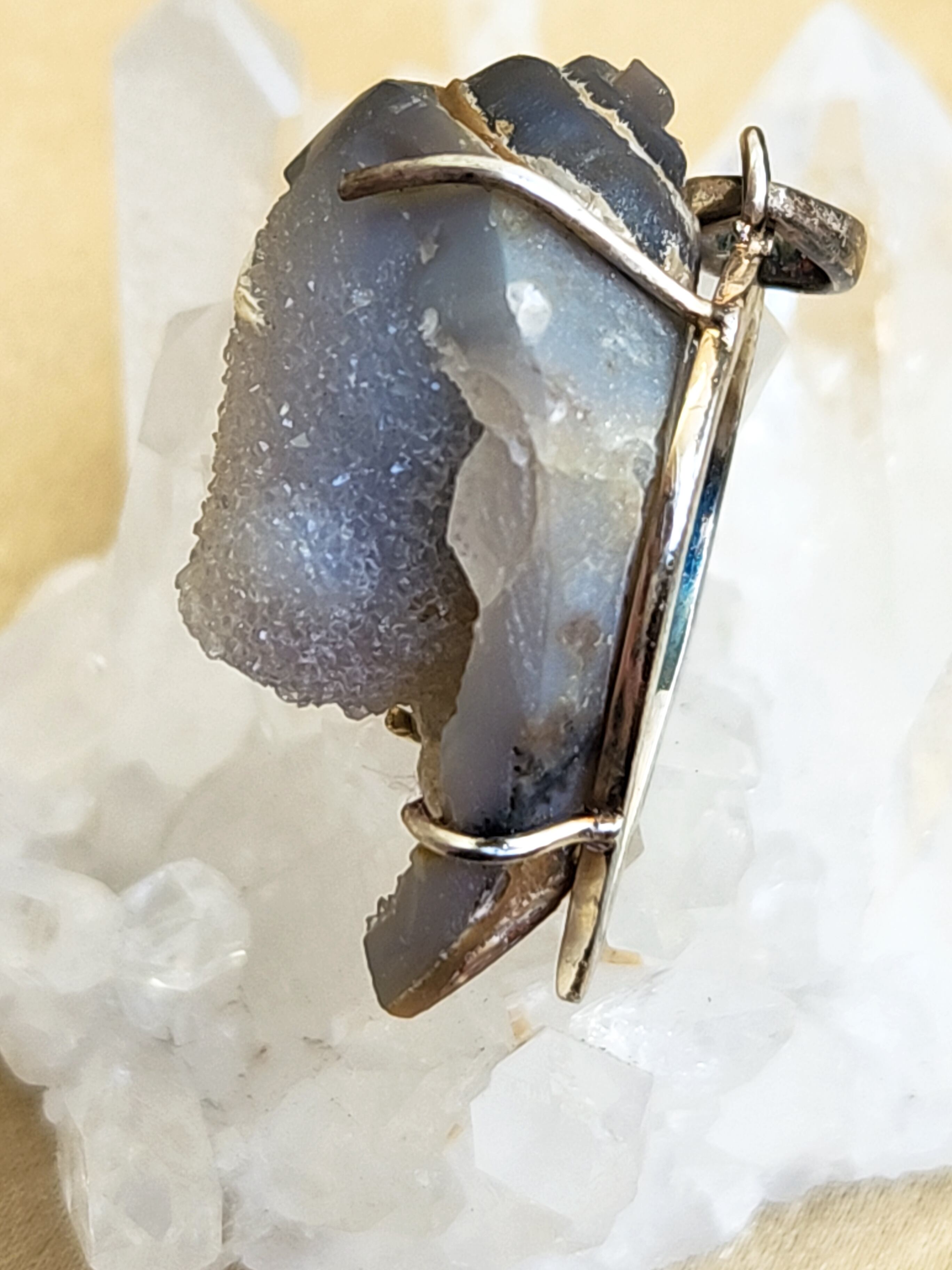 瑪瑙(メノウ、アゲート)の縞模様と小さな水晶の結晶(ドゥルージー)